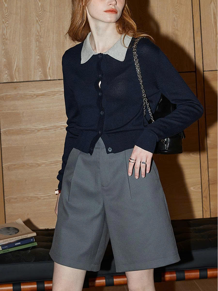 Kiểu dáng: Cardigan dài tay, cổ bẻ phối màu độc đáo