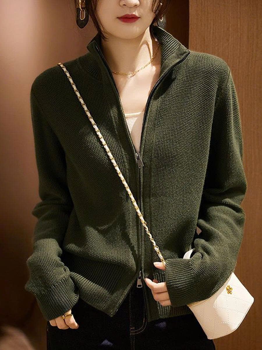 Kiểu dáng: Cardigan cổ đứng, thiết kế hai khóa kéo tiện lợi