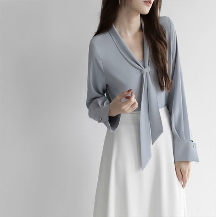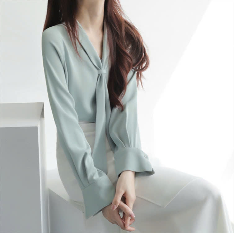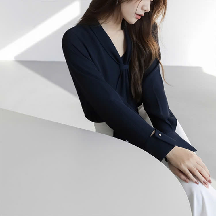 1. Chi tiết sản phẩm: Áo sơ mi dài tay cổ chữ V khí chất rạng ngời D617240