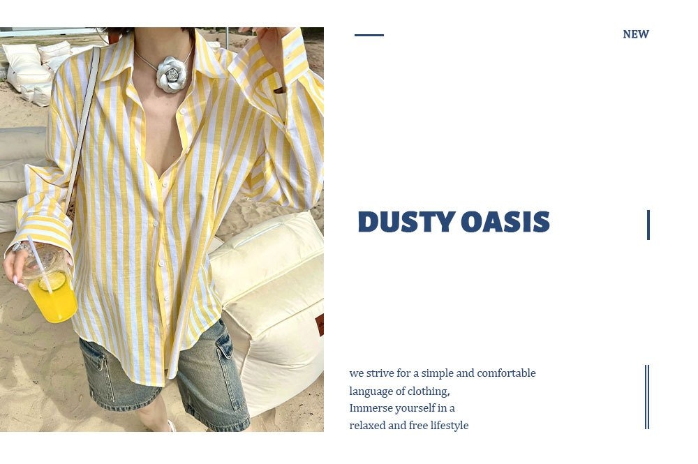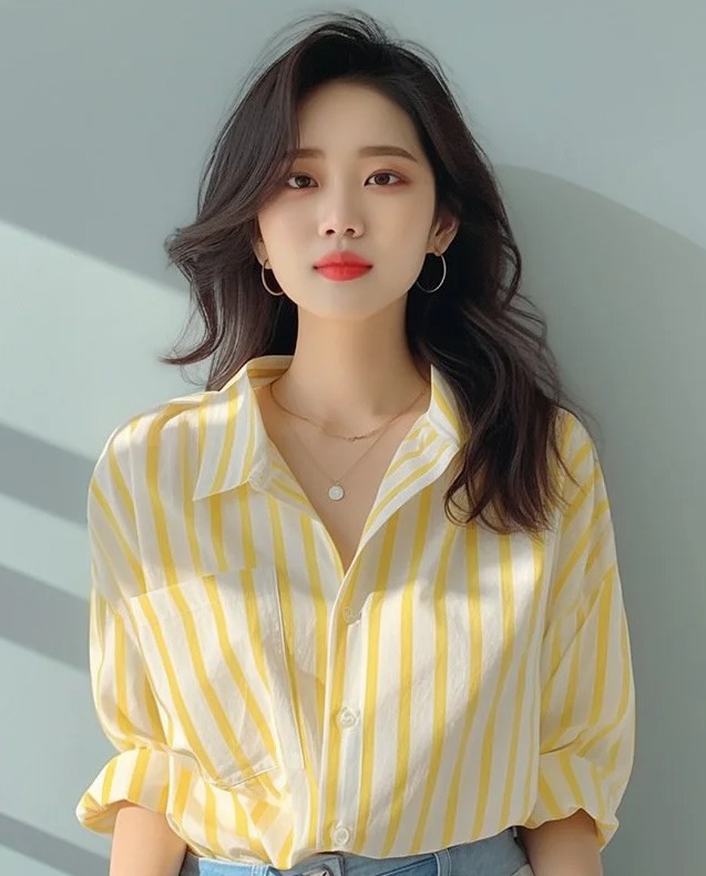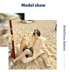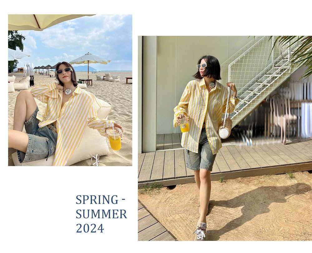 Chi tiết sản phẩm: Áo sơ mi kẻ vàng thanh lịch công sở phong cách Hàn Quốc hiện đại xu hướng hè mới D145240