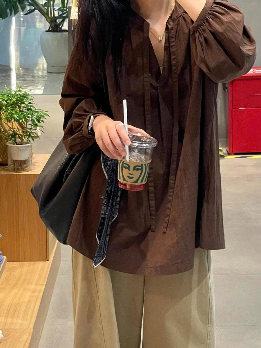 Áo sơ mi nữ màu nâu, thiết kế dáng rộng thoải mái, mang phong cách trẻ trung nhưng vẫn thanh lịch. Chất liệu cao cấp, thích hợp mặc trong mùa xuân và mùa thu, dễ phối với nhiều loại trang phục khác nhau.