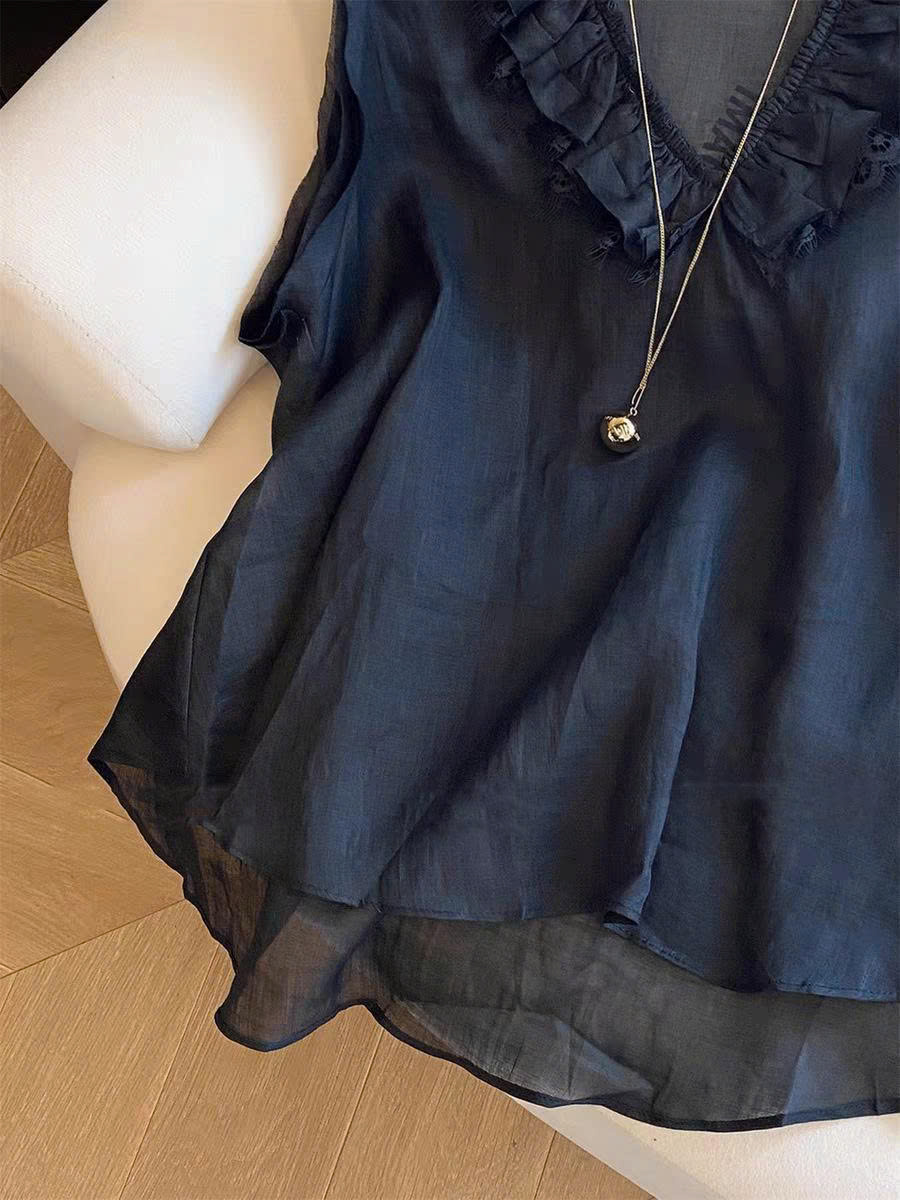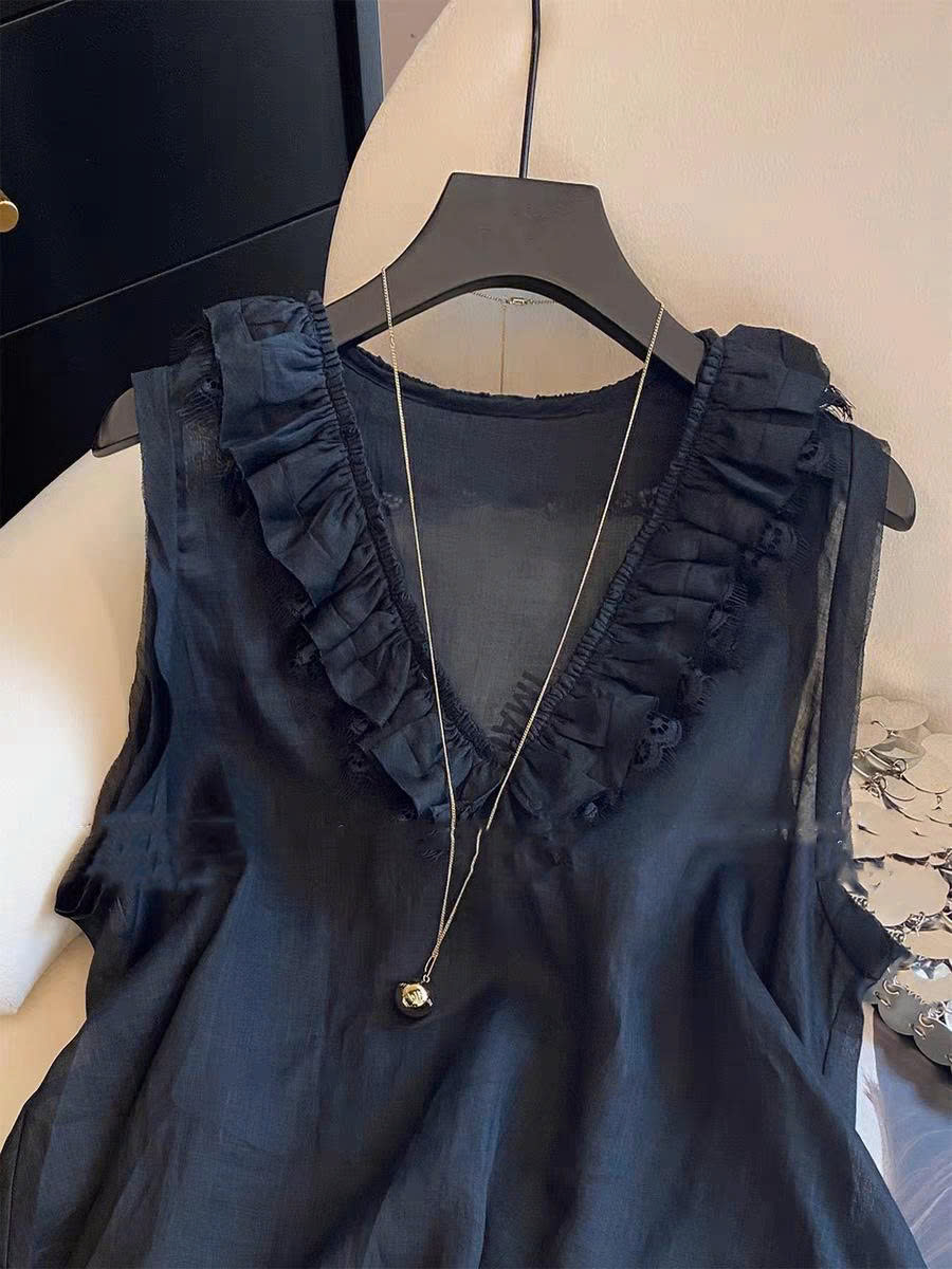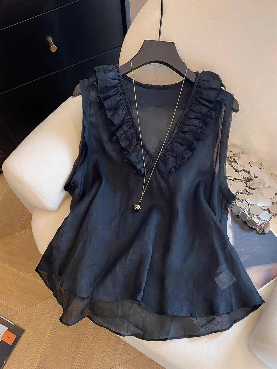 Áo sơ mi nữ cổ chữ V xếp nếp sang trọng, thiết kế không tay thoáng mát, chất liệu cao cấp mềm mịn, giúp tôn dáng và mang đến phong cách tinh tế, thuần khiết nhưng đầy khí chất.