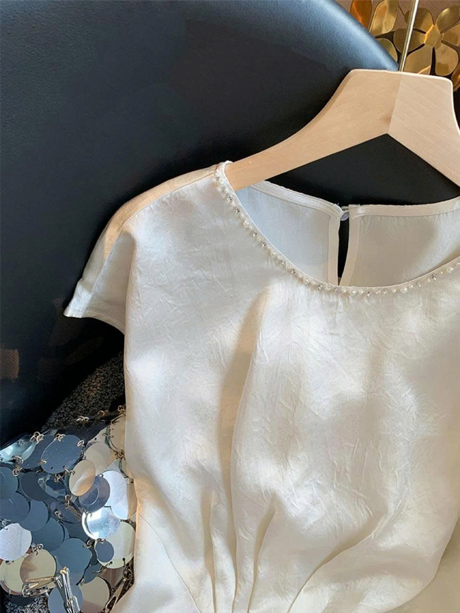 👗 Áo sơ mi satin acetate xếp ly đính cườm màu mơ Pháp – item nổi bật mùa hè 2025 dành cho nữ, mang phong cách thời trang thanh lịch, sang trọng. Thiết kế xếp ly tinh tế, đính cườm nổi bật, tôn dáng chuẩn phong cách Pháp.