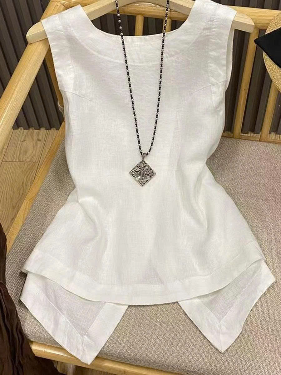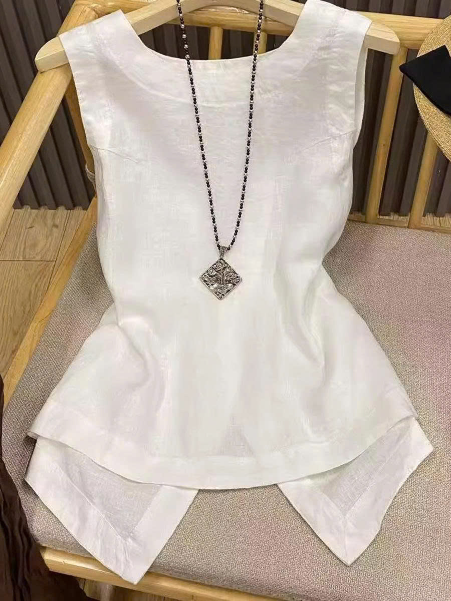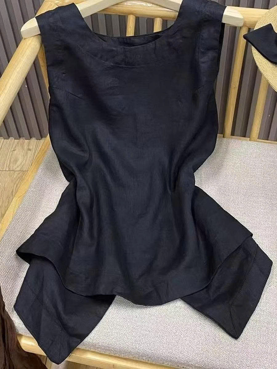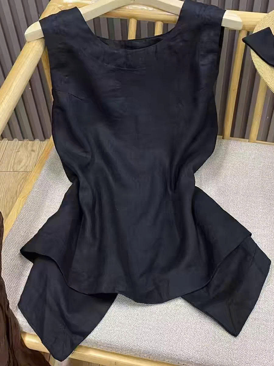 Áo sơ mi nữ không tay xẻ tà sau độc đáo, mang phong cách Pháp hiện đại. Chất liệu vải lanh cao cấp thoáng mát, mềm nhẹ, cực kỳ thoải mái khi mặc mùa hè. Dáng áo đơn giản nhưng tinh tế, dễ dàng phối đồ từ công sở đến dạo phố.