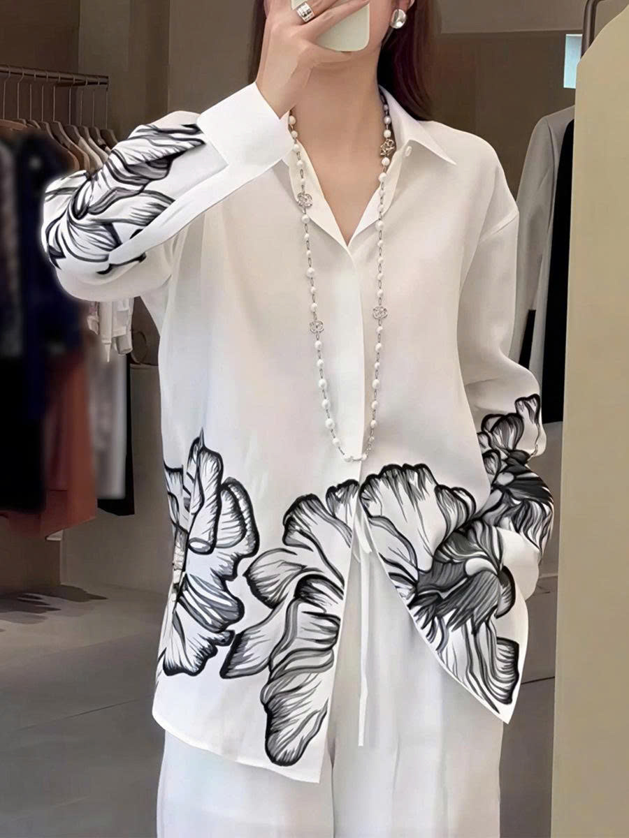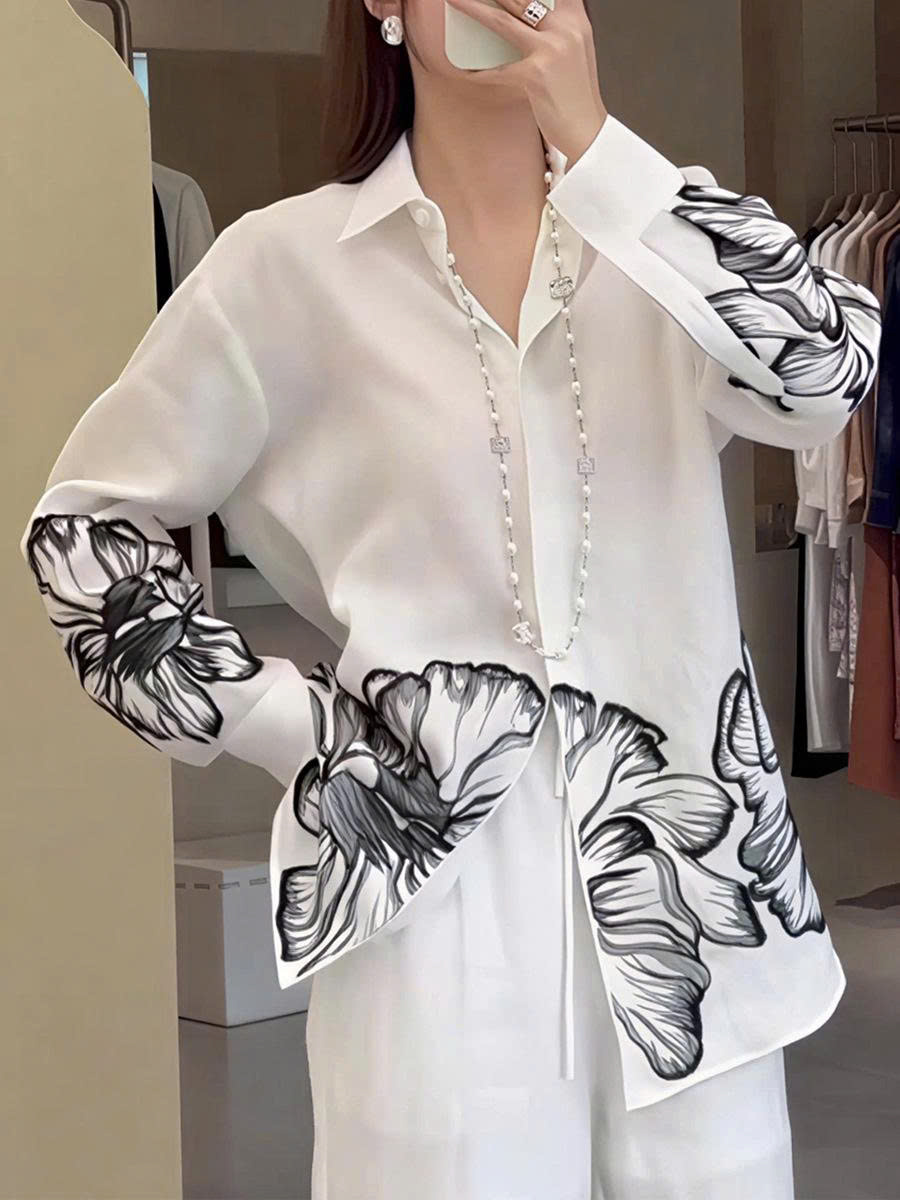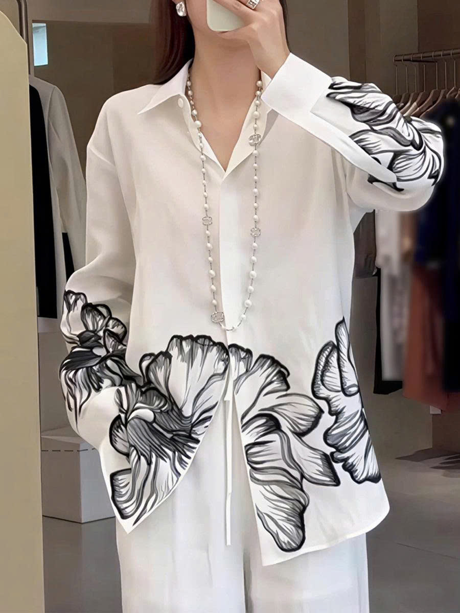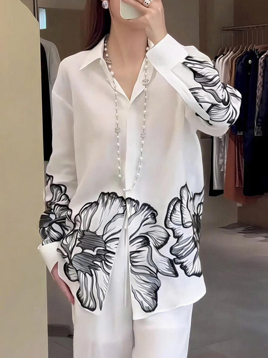 Áo sơ mi nữ dáng rộng thời thượng, phong cách Pháp tối giản nhưng tinh tế. Thiết kế tay dài thanh lịch, chất liệu mềm mại.