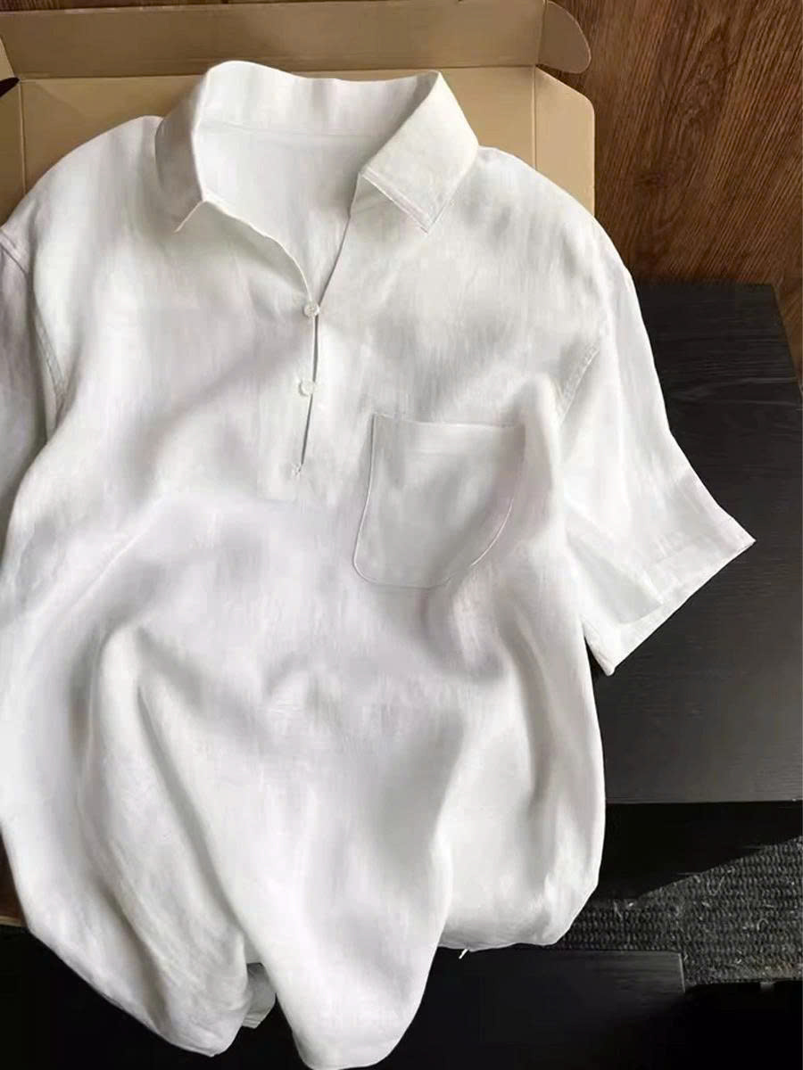 Áo sơ mi tay ngắn cổ bẻ thiết kế tối giản, tinh tế, dễ phối đồ. Chất liệu cotton & vải lanh cao cấp, thấm hút mồ hôi, thoáng mát, mang lại sự thoải mái tuyệt đối trong mùa hè.