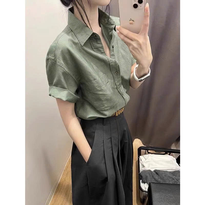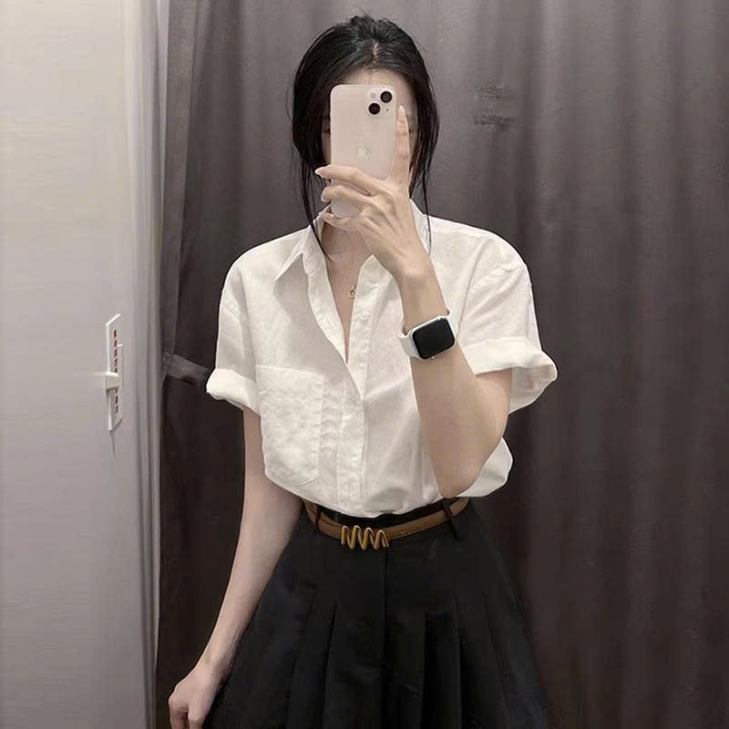 Áo sơ mi tay ngắn, form suông, không nhăn