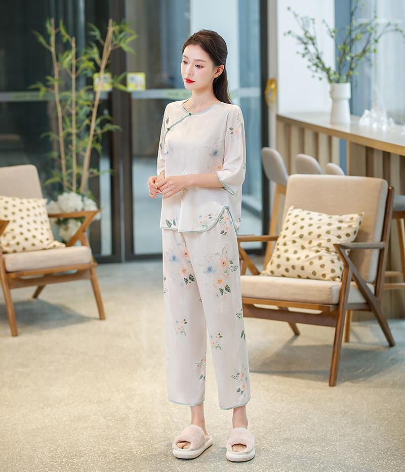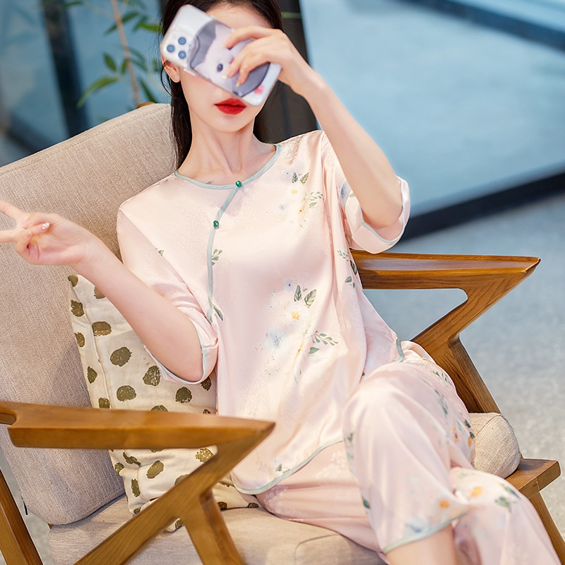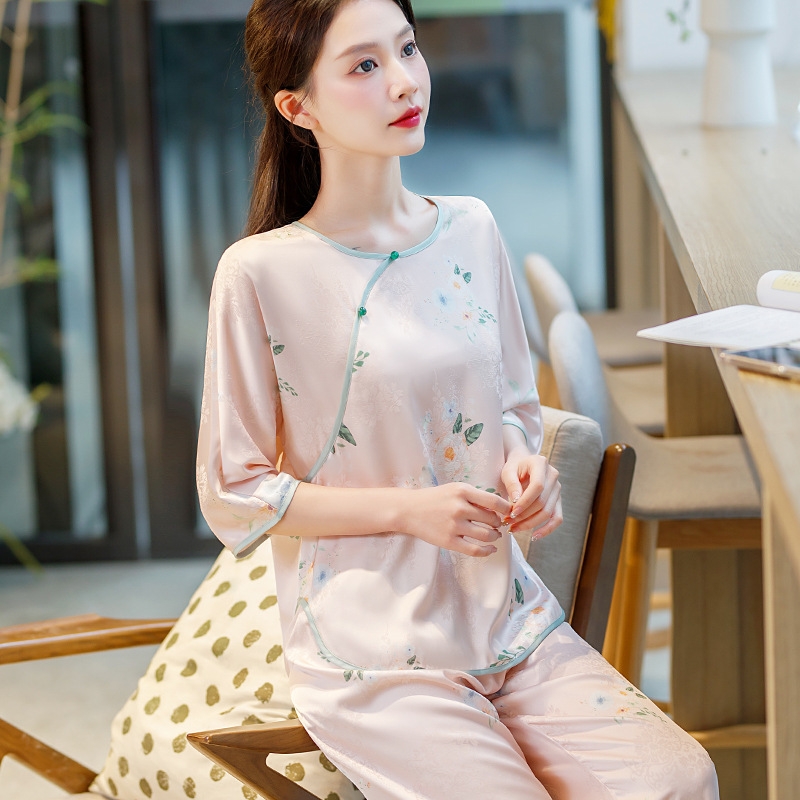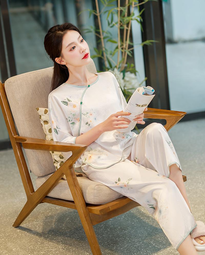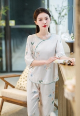 1. Chi tiết sản phẩm: Bộ đồ ngủ cao cấp phong cách Trung Hoa lụa băng jacquard họa tiết nhẹ nhàng XINY DN109250