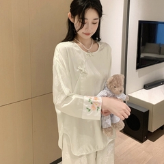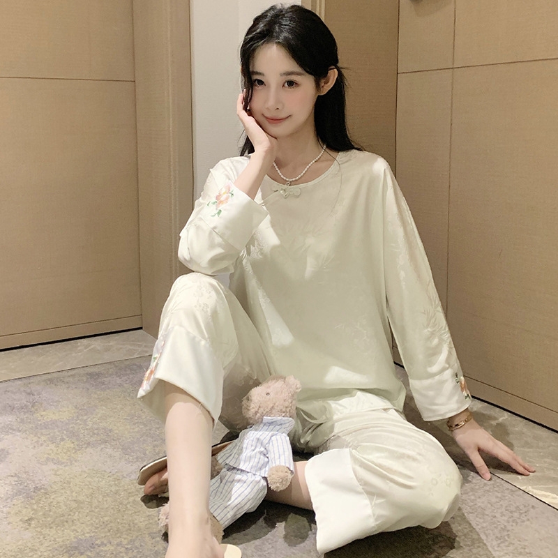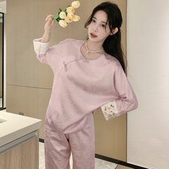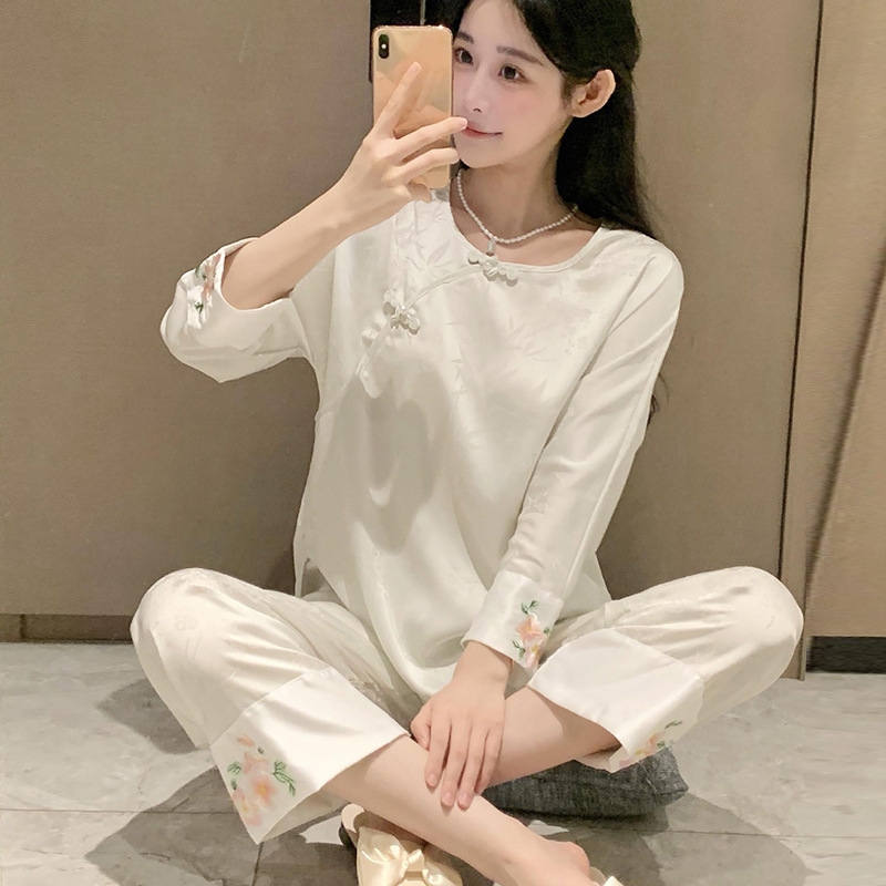 1. Chi tiết sản phẩm: Bộ đồ ngủ kiểu Trung Quốc thêu cúc lụa mỏng jacquard sang trọng và thoải mái XINY DN102250