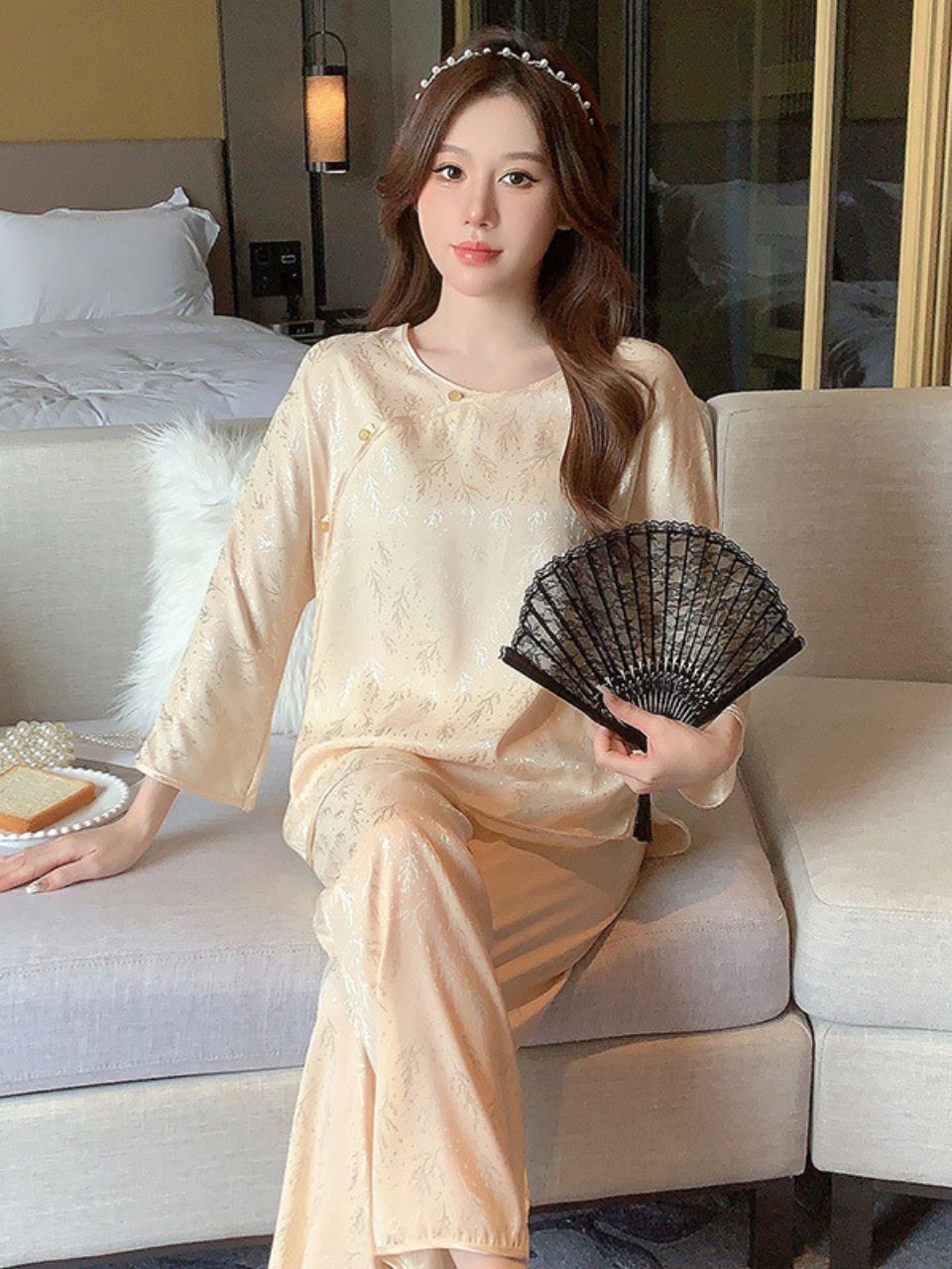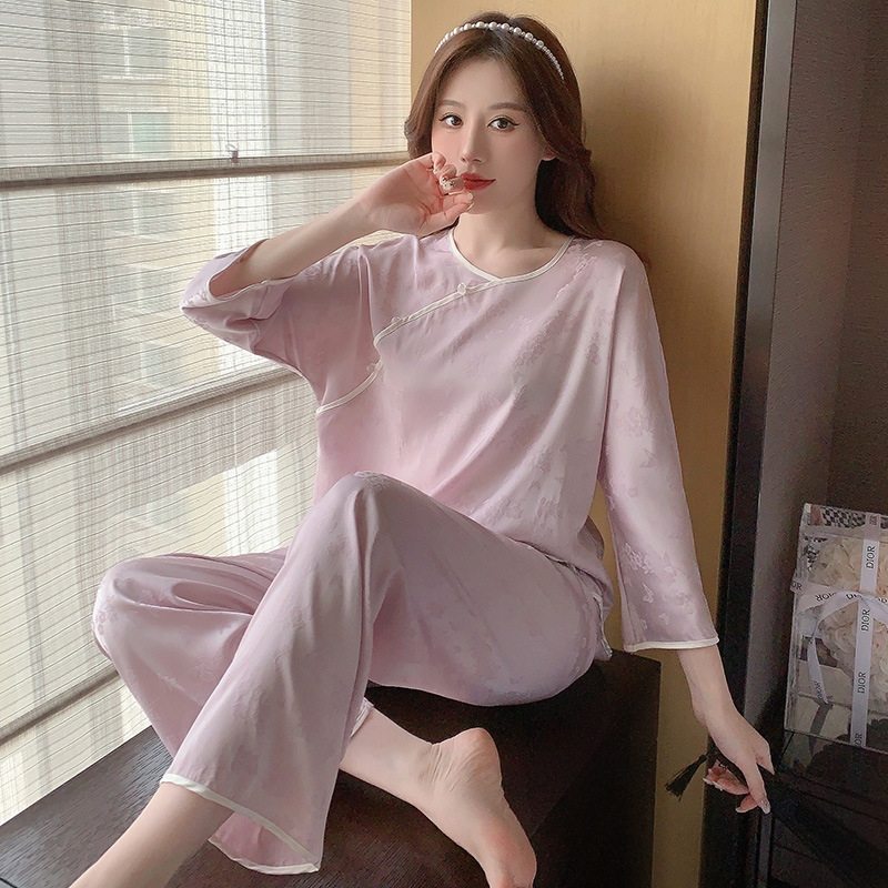 1. Chi tiết sản phẩm: Bộ đồ ngủ phong cách Trung Hoa cao cấp lụa băng cổ tròn XINY DN106250