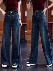 1. Chi tiết sản phẩm: Quần jean cạp cao ống suông dáng dài phối viền QJ149240