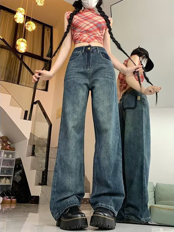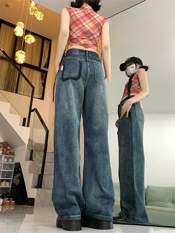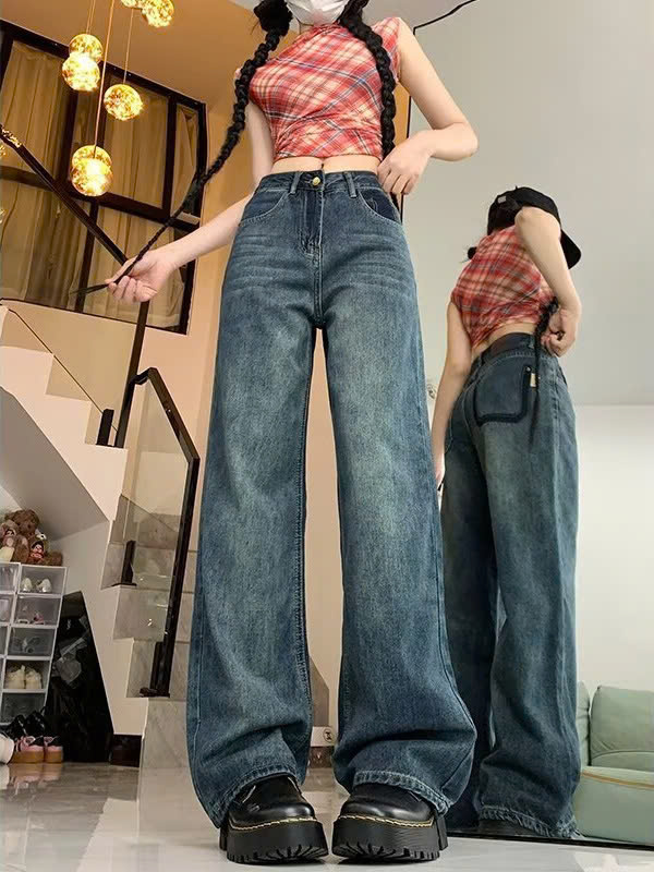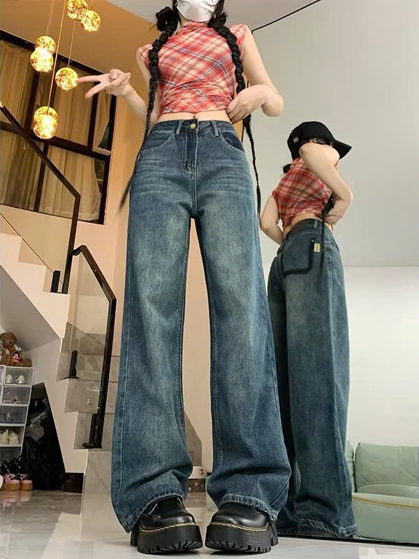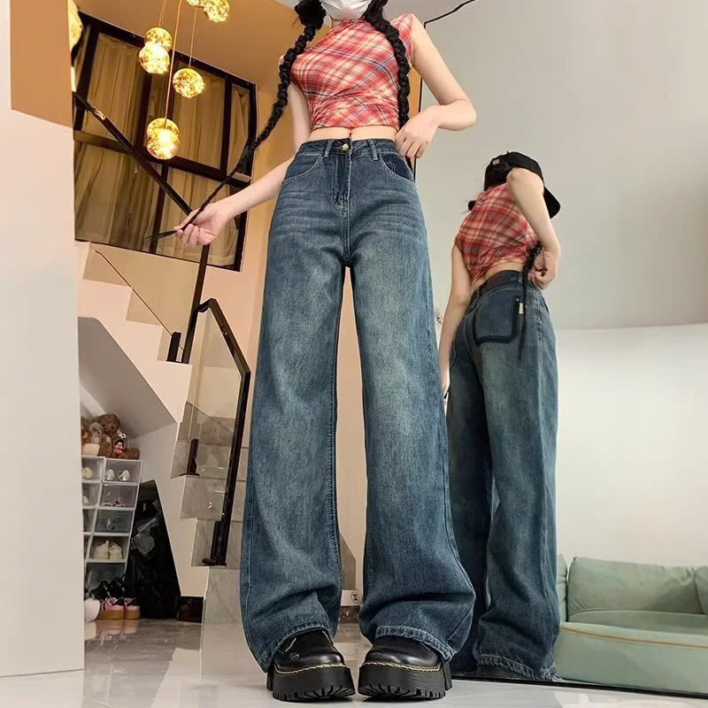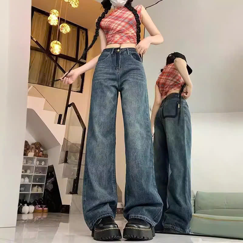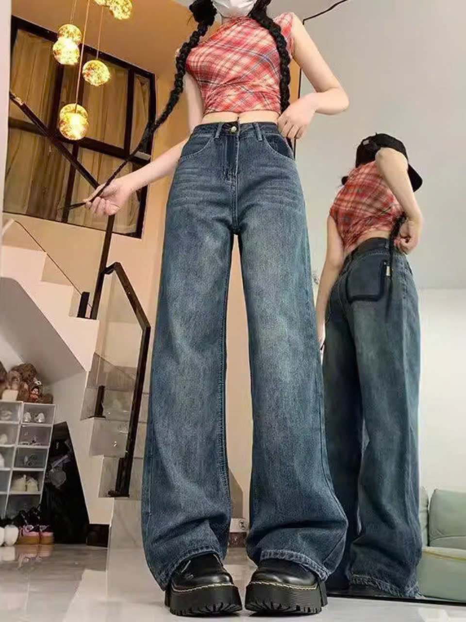 1. Chi tiết sản phẩm: Quần jean cạp cao ống suông dáng dài QJ182240