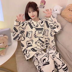 1. Chi tiết sản phẩm: Set bộ đồ ngủ cotton cao cấp họa tiết họa hình dể thương thu đông mới nhất D542240