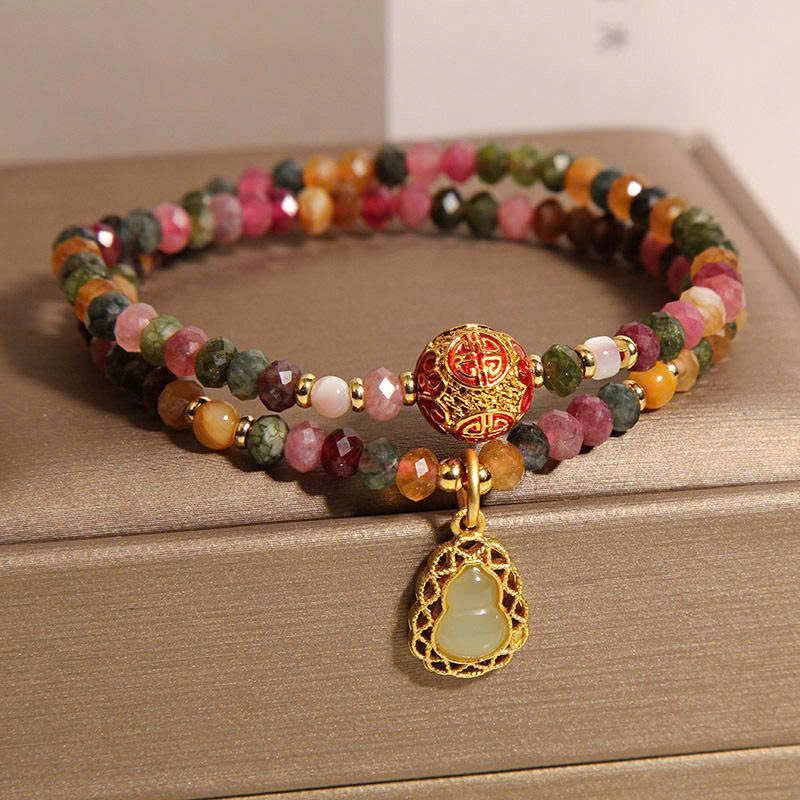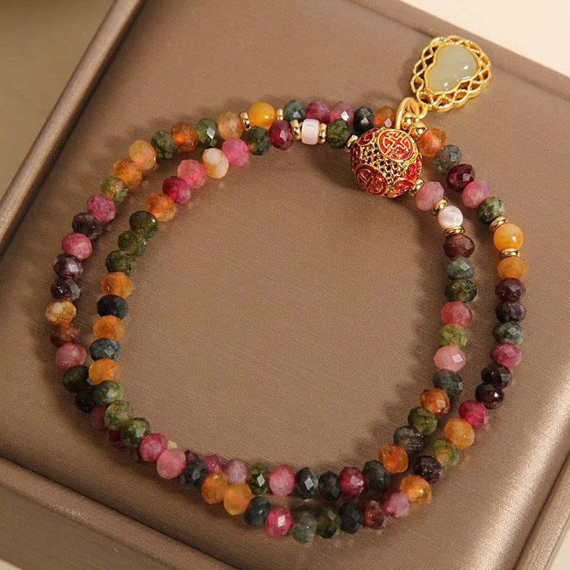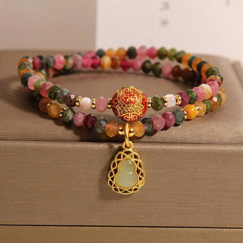 Vòng Tay Tourmaline Tự Nhiên Hai Mặt Hình Tròn – Kết Hợp Pha Lê Mặt Bầu Sang Trọng