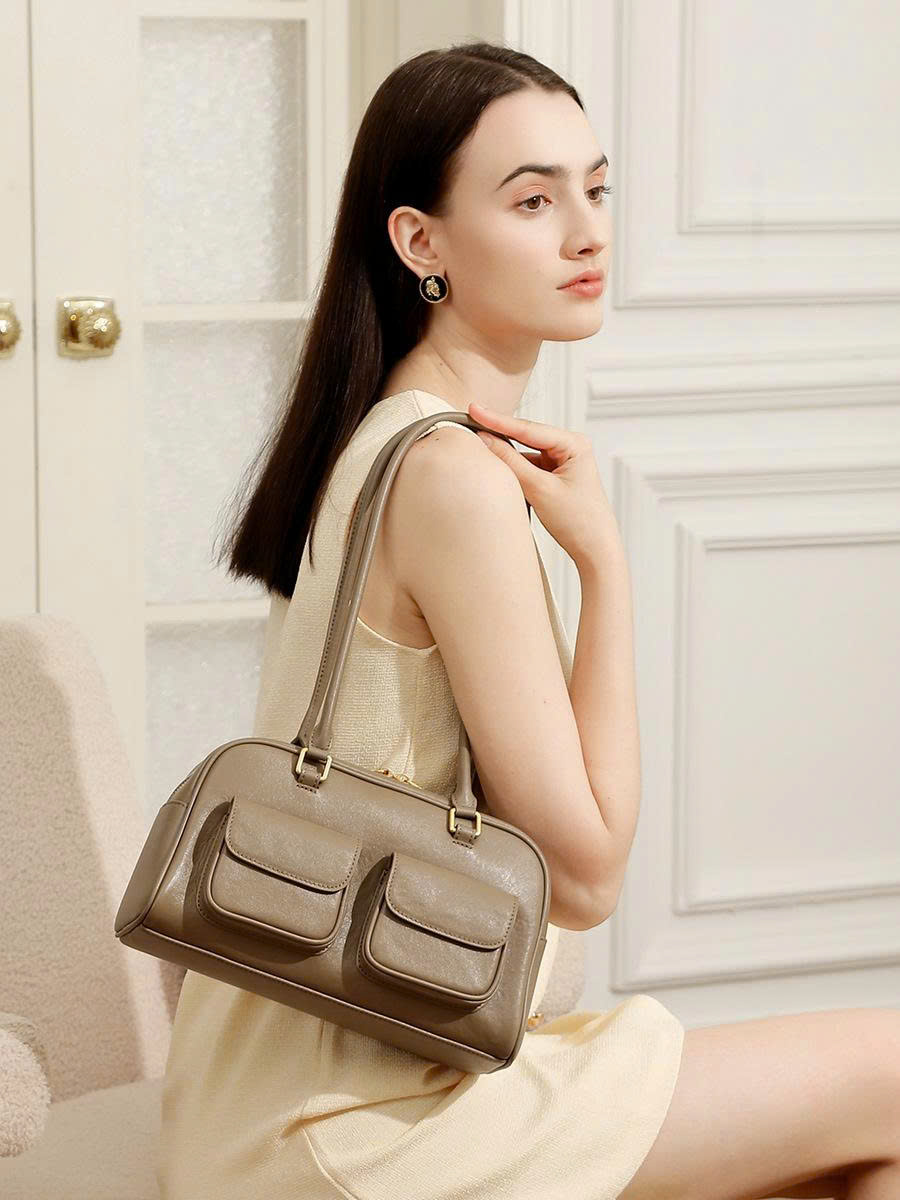 Túi da thật cao cấp phong cách retro kết hợp kiểu dáng Boston bowling sang trọng. Có thể đeo hông, đeo vai hoặc xách tay, phù hợp cả đi làm, đi chơi, dạo phố.