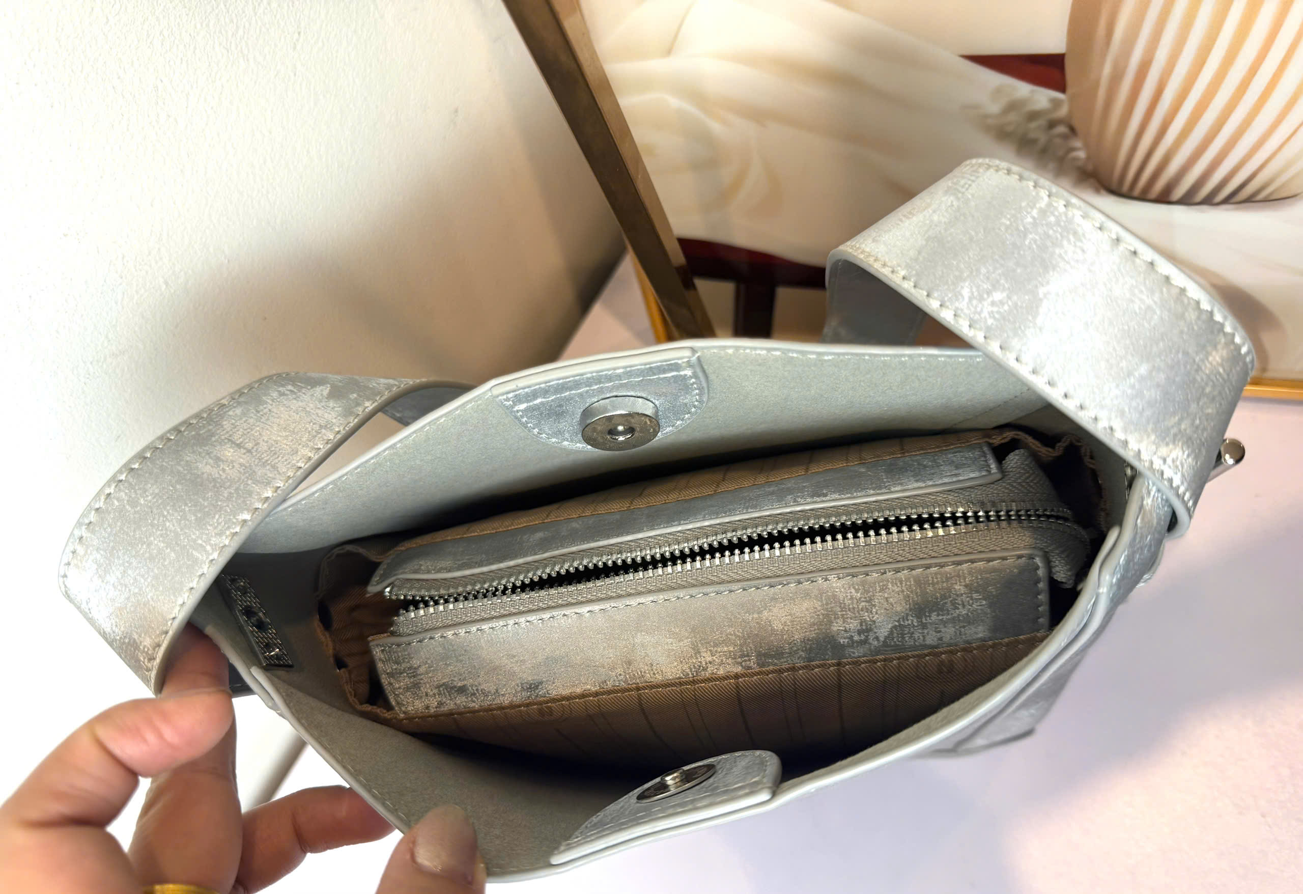 • Ngăn chính rộng rãi, tiện đựng ví, điện thoại, sổ tay và các vật dụng hằng ngày