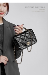 Túi xách nữ mini 2025 lấy cảm hứng từ phong cách Chanel cổ điển, kết hợp chất liệu da thật cao cấp cùng chi tiết kim loại ánh kim sang trọng. Dáng nhỏ thời thượng, dễ phối đồ, phù hợp cả đi chơi, dự tiệc hay đi làm. Thiết kế đeo chéo và đeo vai linh hoạt, đáp ứng mọi nhu cầu sử dụng.