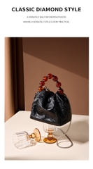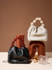Thiết kế: Dáng hộp vuông mini, đeo vai hoặc cầm tay linh hoạt, đính hạt nổi bật