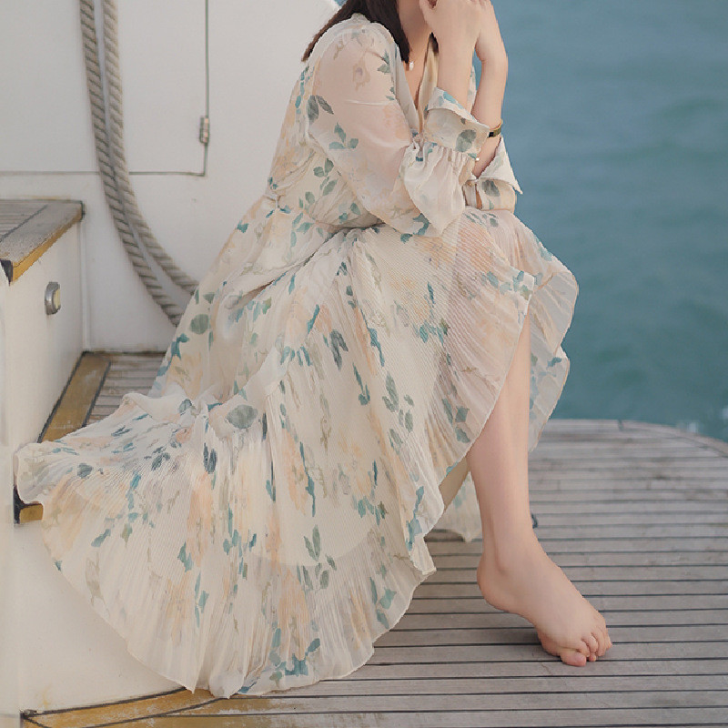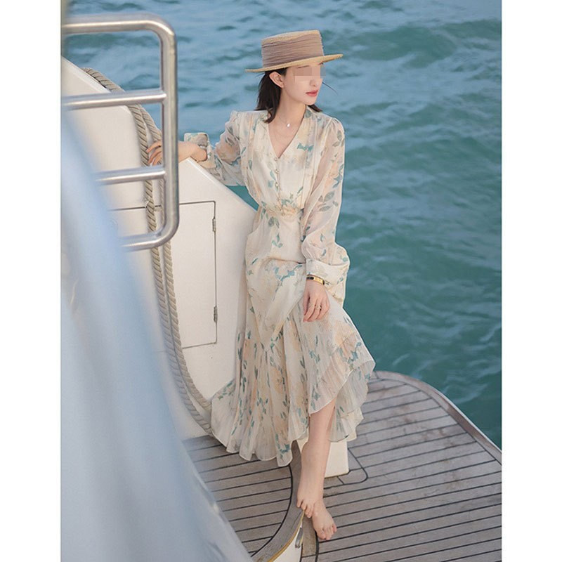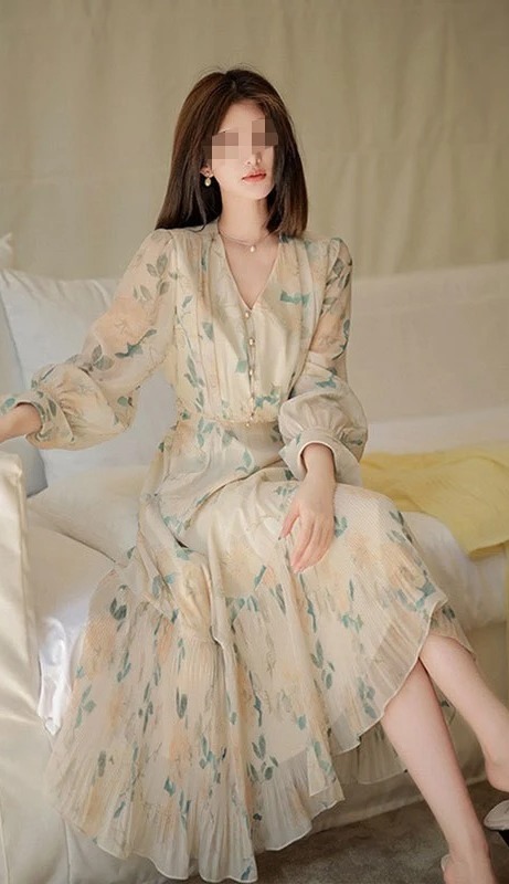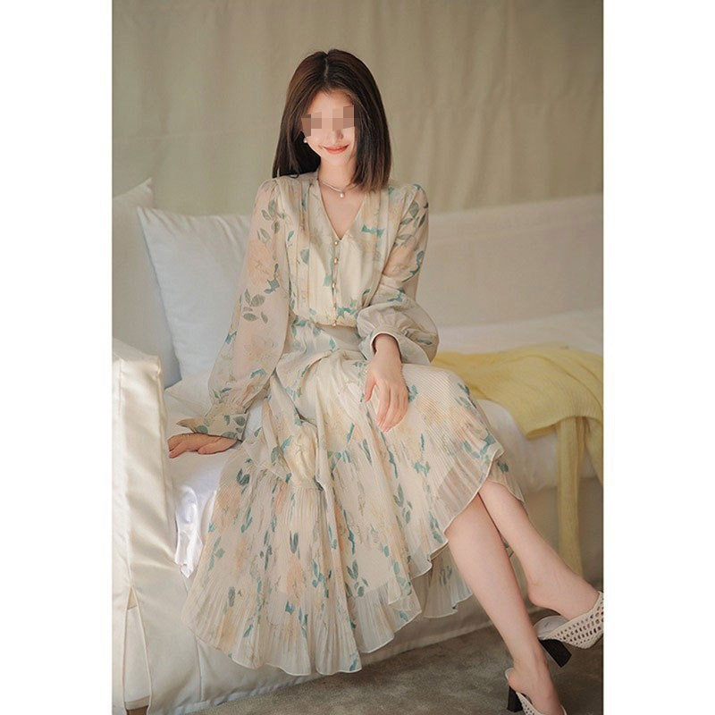 1. Chi tiết sản phẩm: Váy voan hoa dáng dài + áo cadigan len mỏng thanh lịch, nhẹ nhàng, khí chất phong cách kiểu Pháp D1802400