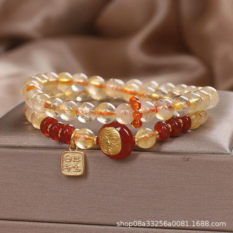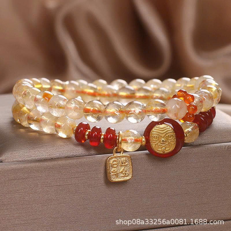 Mã não đỏ Zakiram Citrine – biểu tượng của sự mạnh mẽ, may mắn và quyến rũ.Pha lê tóc tự nhiên – mang vẻ đẹp mềm mại, trong suốt, tăng sự dịu dàng và nữ tính. - Tác dụng phong thủy: