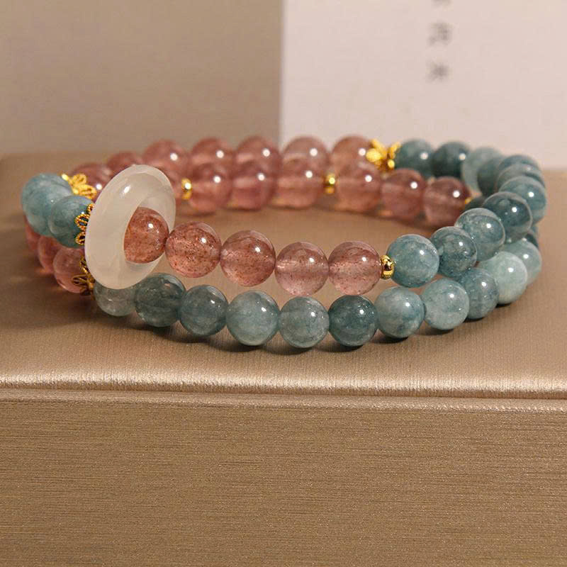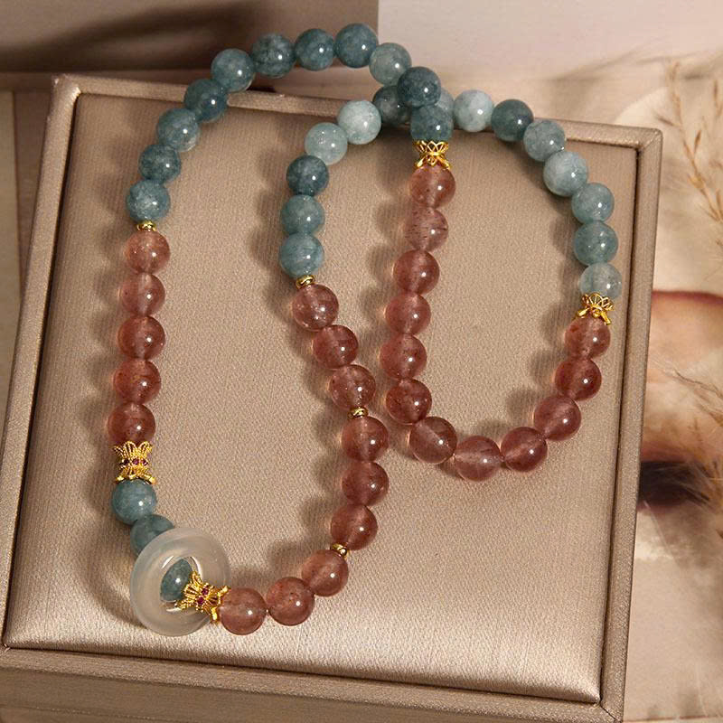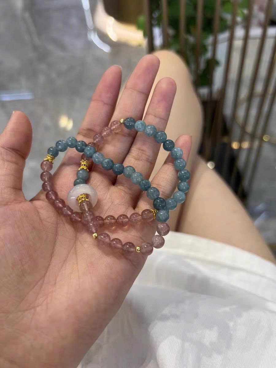 Chất liệu: Ngọc bích xanh nước biển + đá mã não dâu tây|