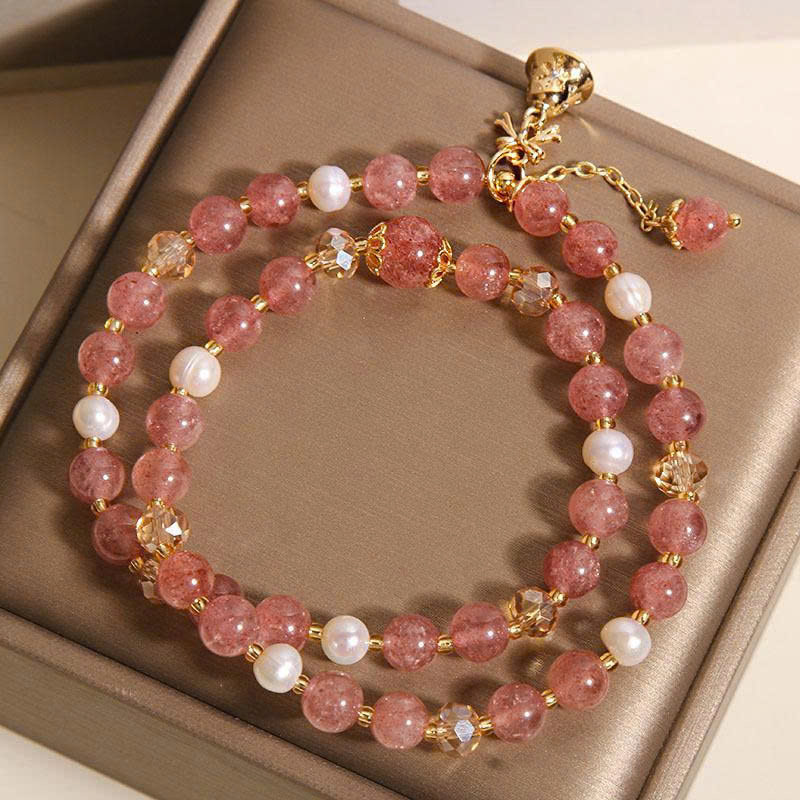 Pha lê dâu tây tự nhiên kết hợp ngọc trai cao cấp, sang trọng và quý phái.