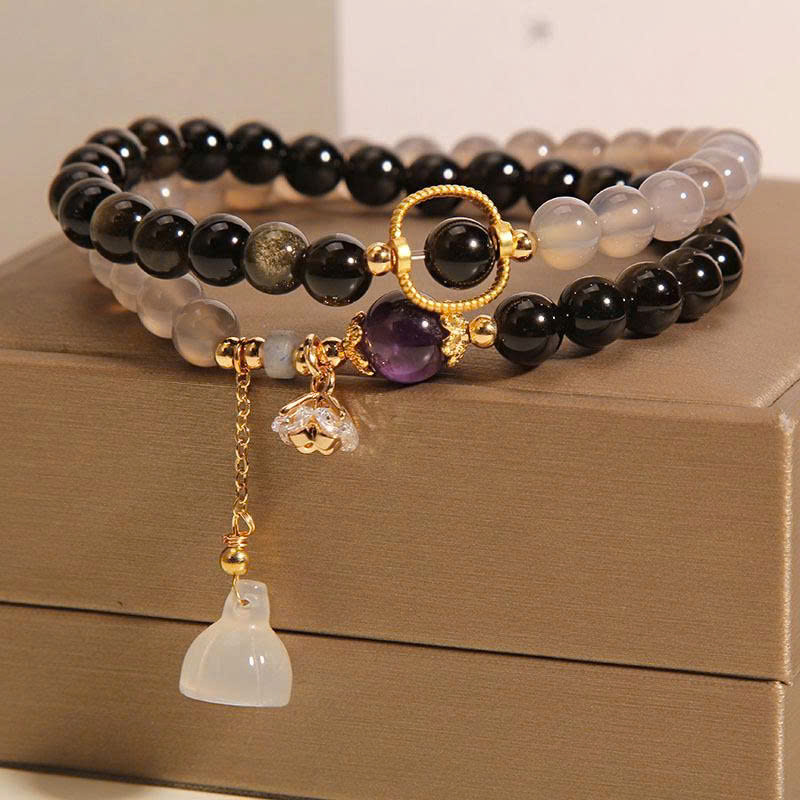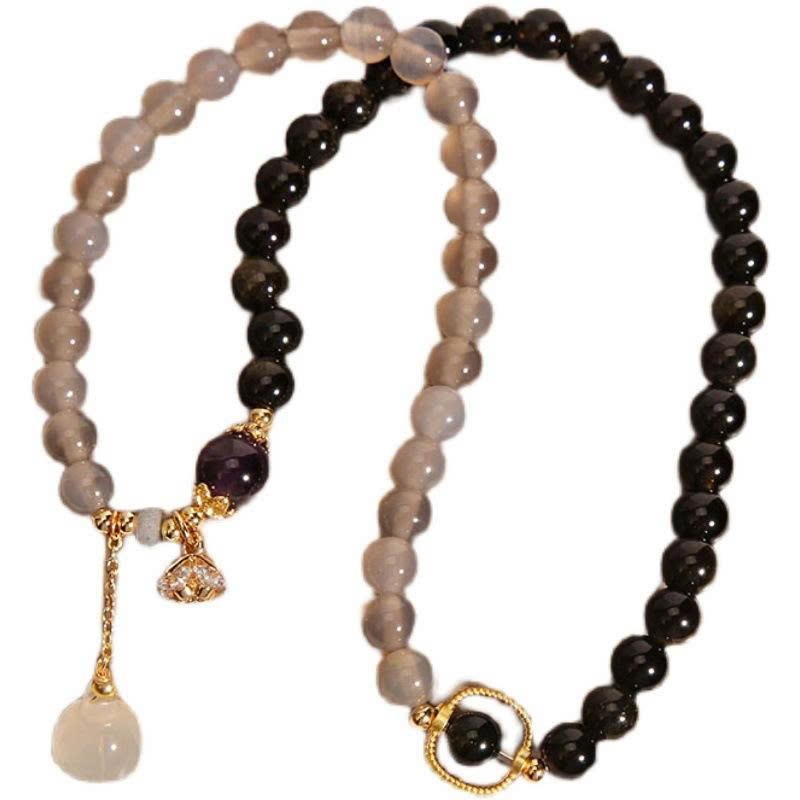 Chất liệu: Đá mã não xám tự nhiên + đá obsidian vàng + pha lê