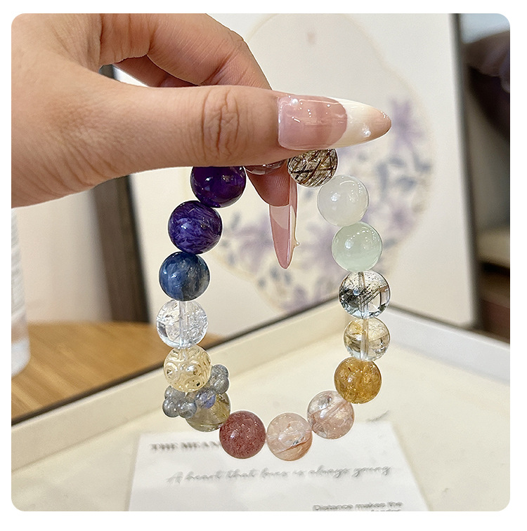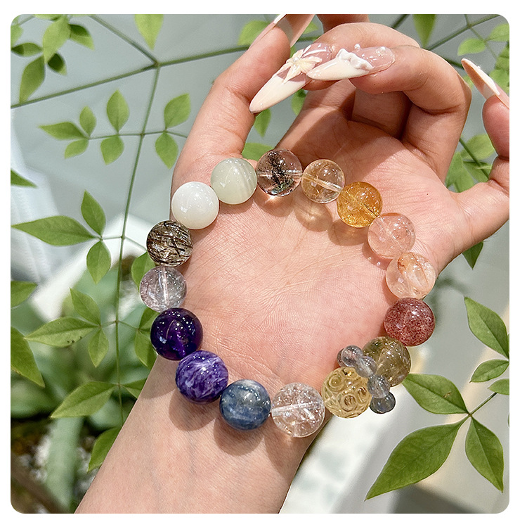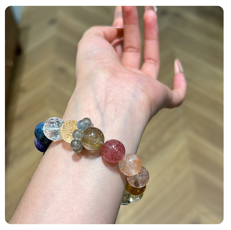 Vòng tay này là sự kết hợp phong phú giữa các loại đá tự nhiên, vừa có giá trị thẩm mỹ, vừa mang ý nghĩa phong thủy mạnh mẽ.