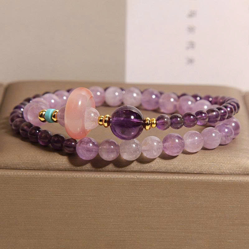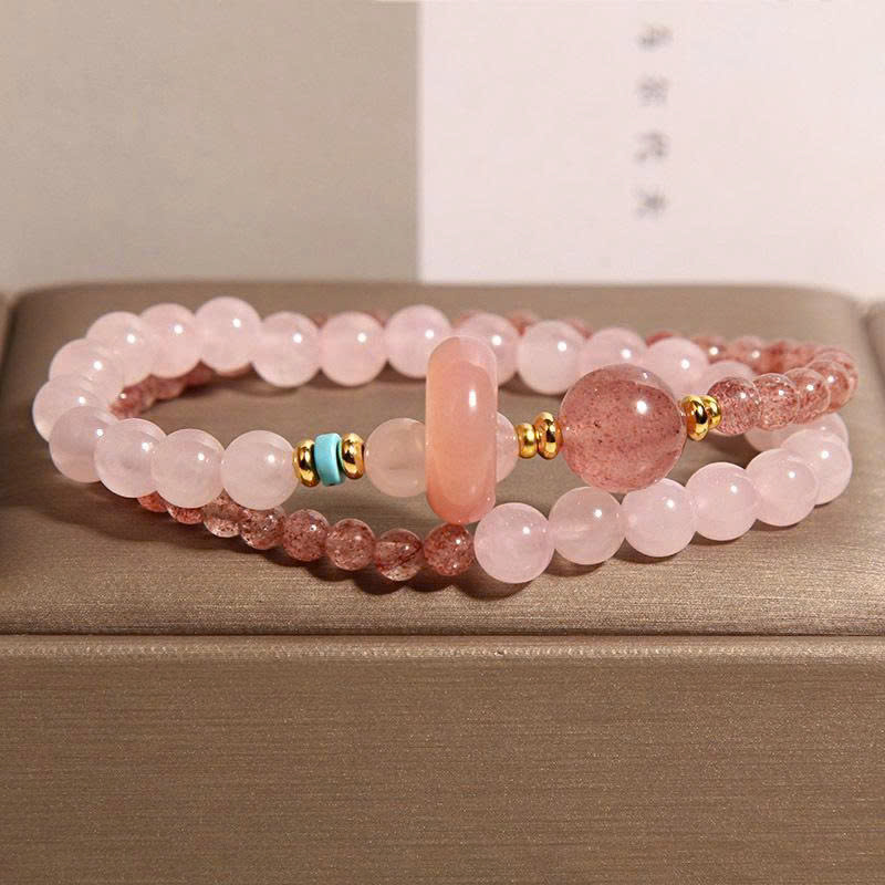 💎 Chất liệu: Thạch anh hồng + hạt pha lê tự nhiên cao cấp