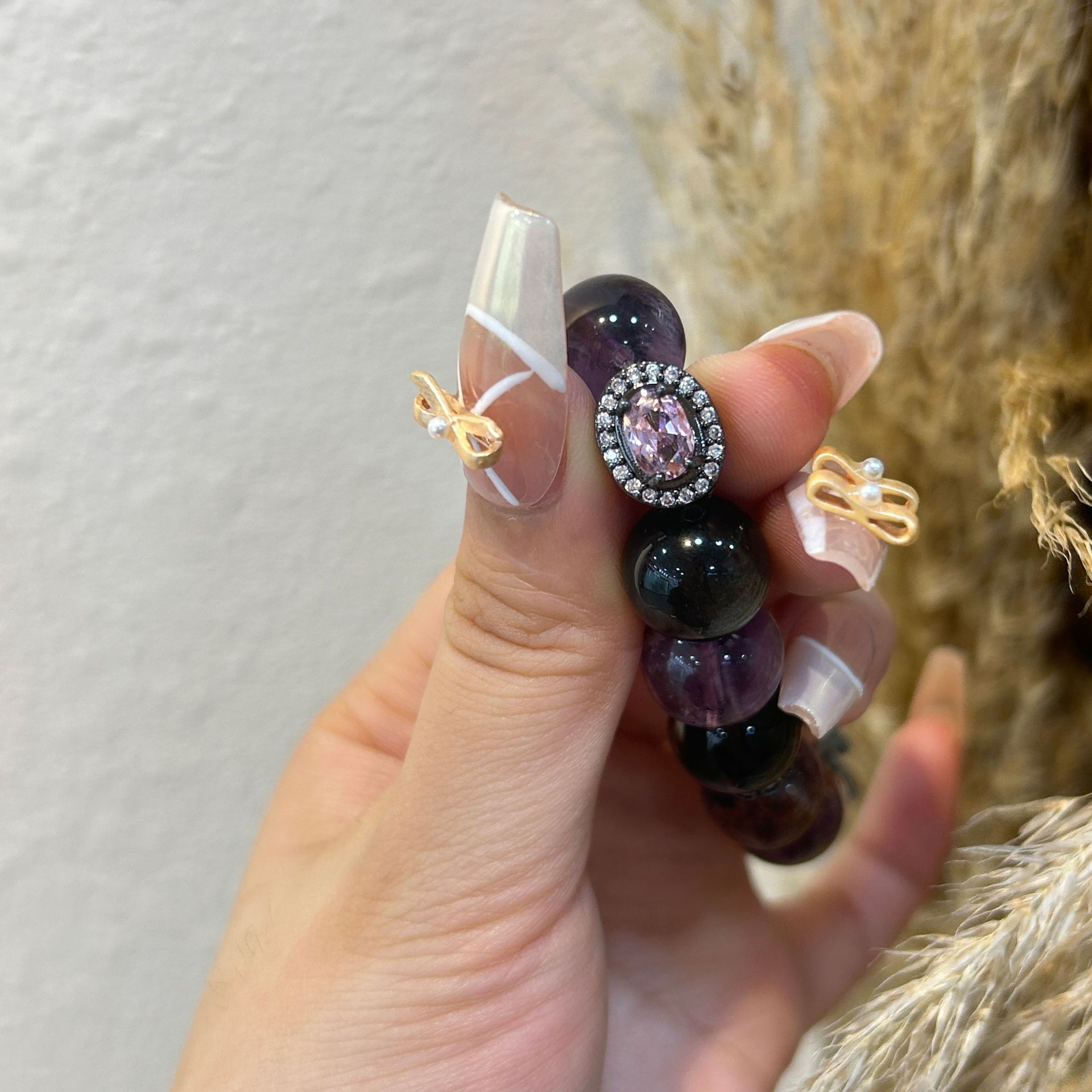 Màu sắc: Sự kết hợp giữa tím, đen, và trong suốt tạo nên vẻ đẹp tinh tế, sang trọng, mang ý nghĩa phong thủy về bảo vệ, cân bằng và phát triển.